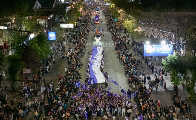 Miles de estudiantes de Tunuyán protagonizaron la Farándula sobre la avenida principal del departamento