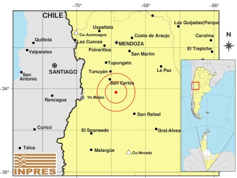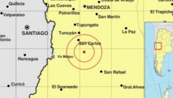 Este viernes, a las 10:58 de la mañana, se registró un movimiento sísmico en Valle de Uco. El epicentro se ubicó a 135 kilómetros al sur de Mendoza, 250 kilómetros al oeste de San Luis y a 39 kilómetros al sureste de San Carlos.