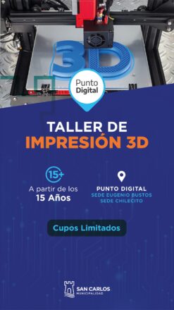 La Municipalidad de San Carlos informó que se realizará un taller de impresión 3D con cupos limitados.