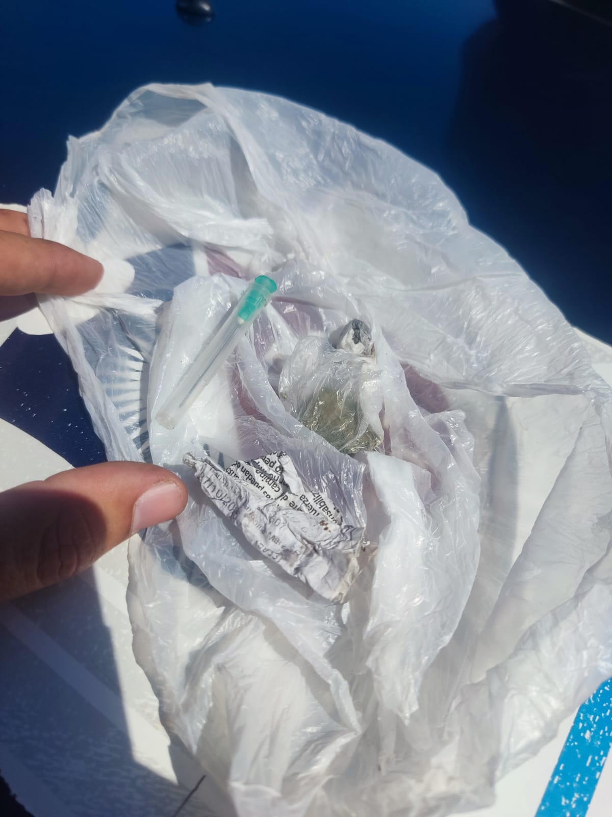 Cuando el sujeto en cuestión escapaba, arrojó una bolsa, que posteriormente fue secuestrada por la policía, y al revisar el interior de la misma, se descubrió que tenía marihuana, un rollo de cocina y una aguja.